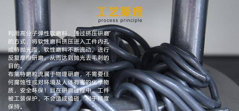 利用高分子彈性軟磨料,通過擠壓研磨的方式,將軟性磨料擠壓進入工件內(nèi)孔或待拋光面,軟性磨料不斷流動,進行